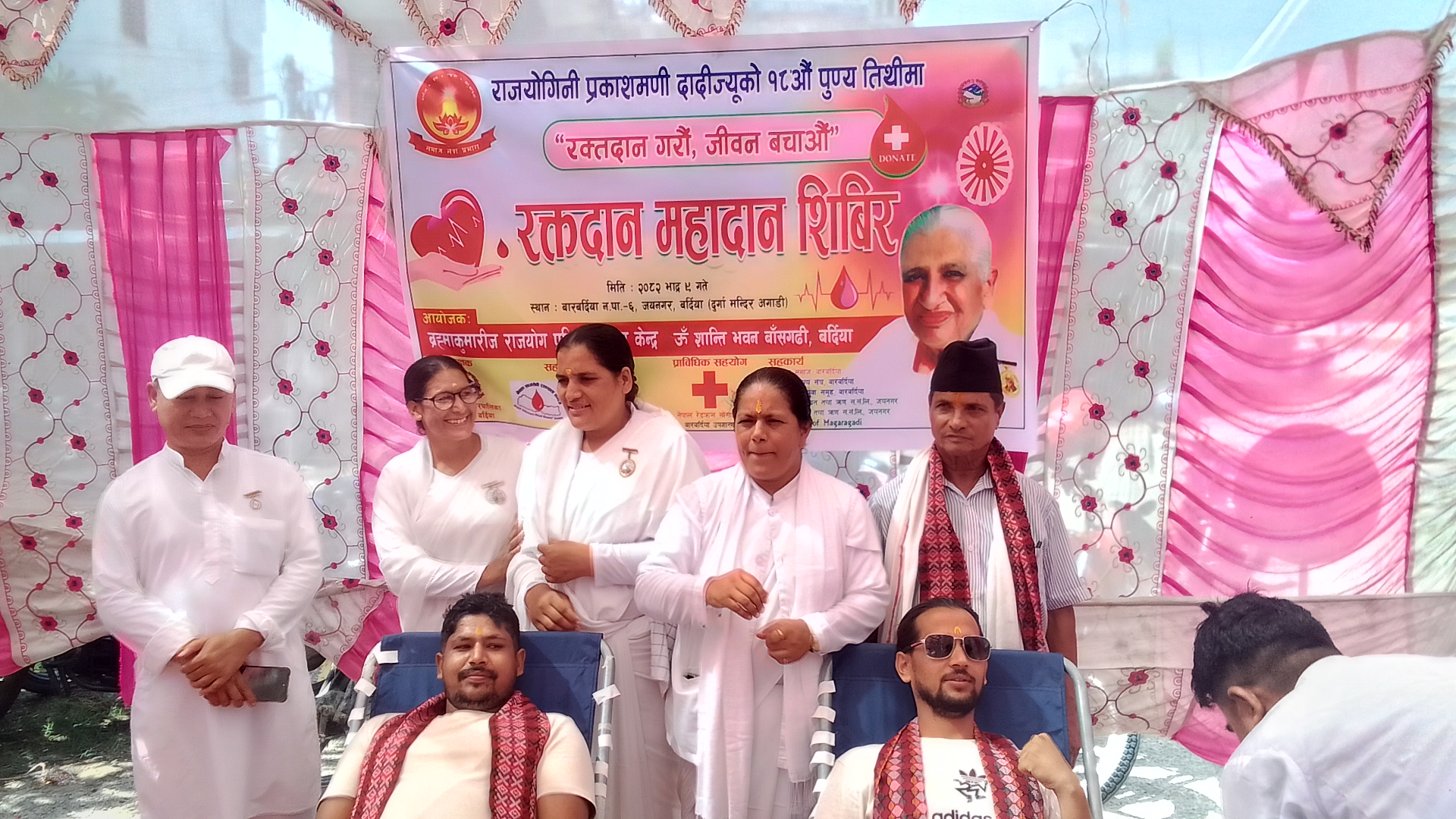 ब्रहम कुमारी ईश्वरिय विश्वविद्यालयद्वारा बारबर्दियामा बृहत रक्तदान कार्यक्रम हुदै