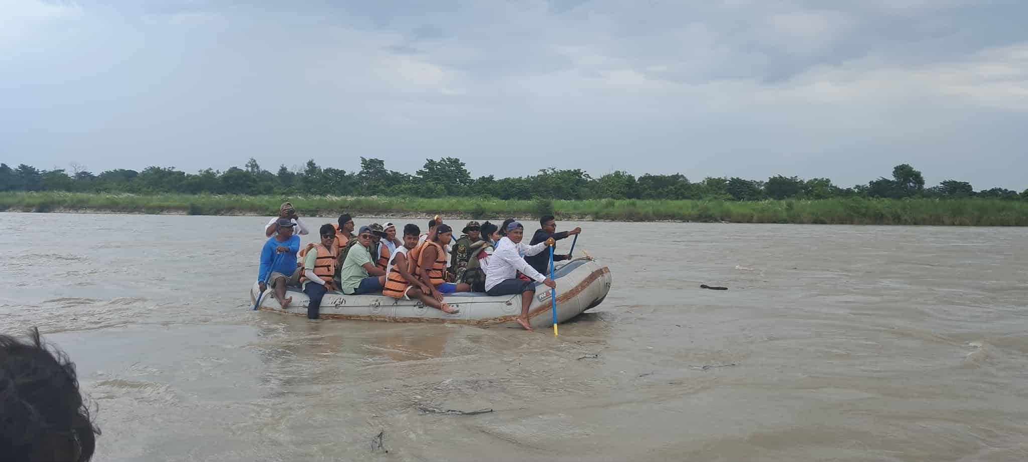 सिबिएपियु बर्दियाले कर्णाली गेरुवा नदिमा र्याफ्टिङ्ग गस्ती गर्यो ।